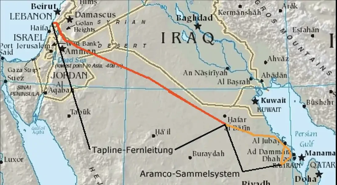 然后是《亚伯拉罕协议》。沙特的石油,经由约旦输送到海法港;跨阿拉伯输油管道(Tapline)被重新激活。一条由实体基础设施构成的走廊,正在把沿海国家连接成一个能源网络,彻底绕开「心脏地带」。这是用管道和钢铁搭建起来的「边缘地带联盟」。