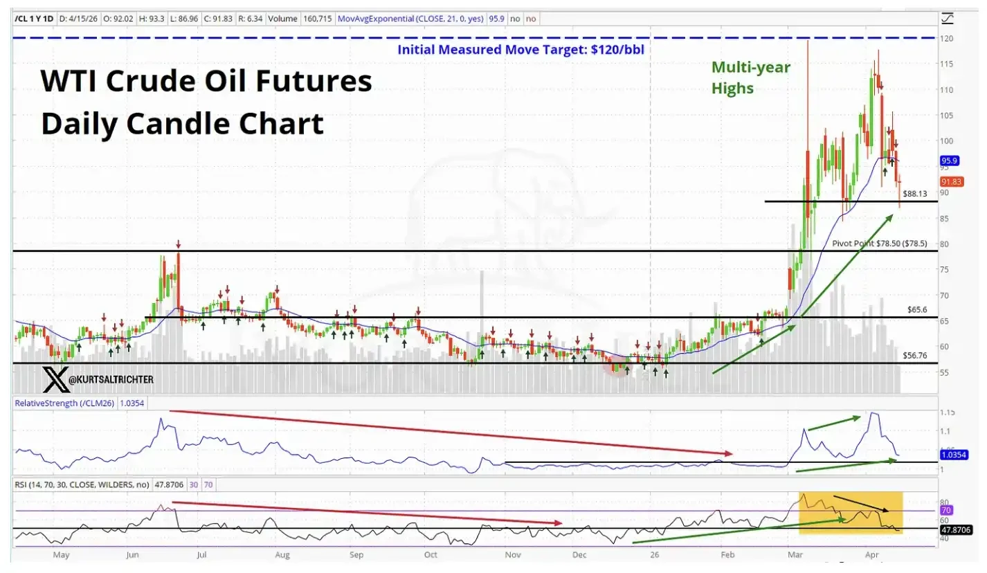 如果交易员真的对一项稳定的停火协议充满信心,油价早就应该回落到 70 美元区间,并继续下行。但现实并非如此。油价依然维持在高位,这意味着原油市场并没有像股市那样,在定价同样的「冲突即将解决」的预期。