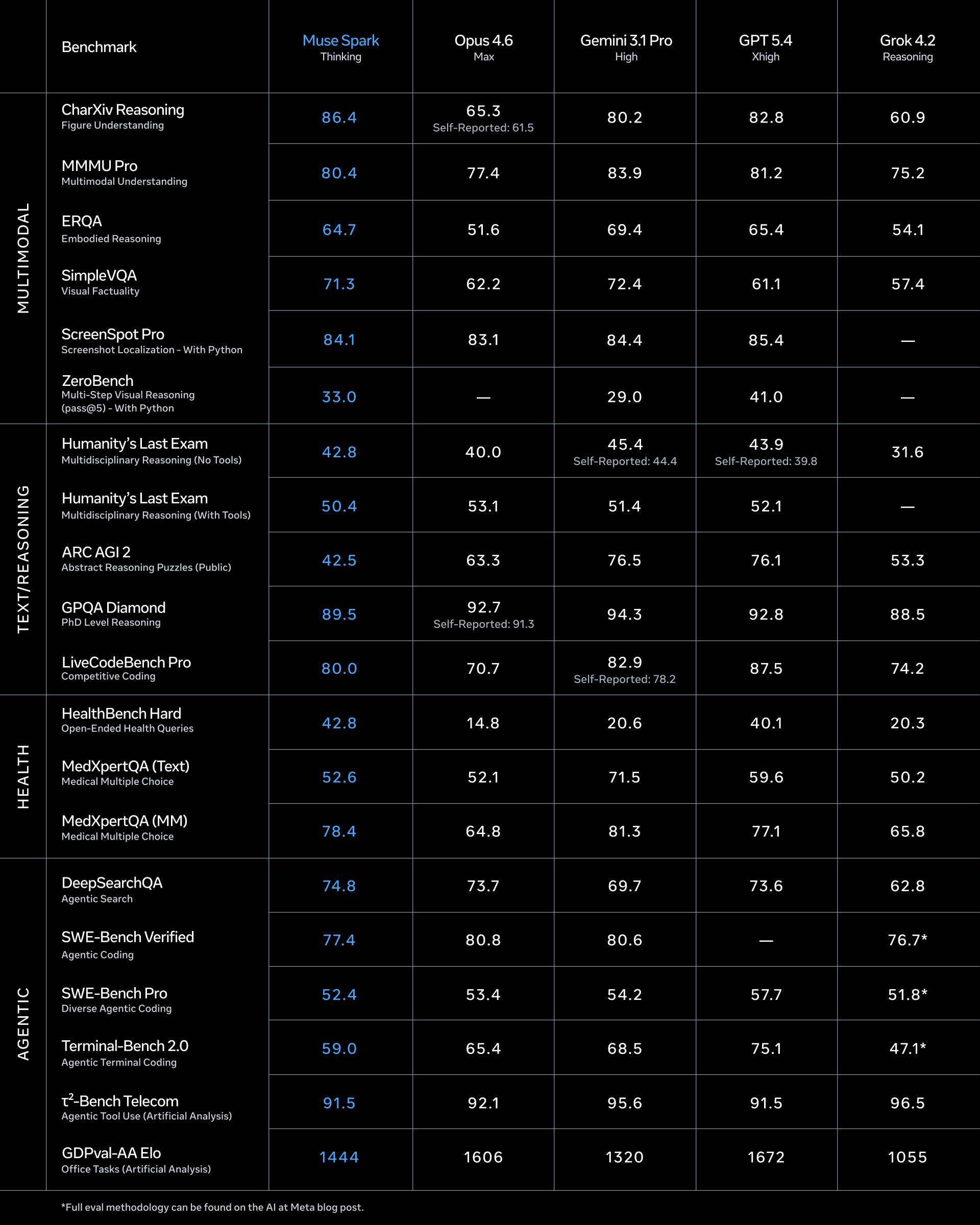 作为 Meta 重金押注 AI 且转向闭源模式后的首个实质性落地产品,Muse Spark 普遍被市场认为是 Meta 追逐 Anthropic、OpenAI、Google 等 AI 第一梯队的开端,虽然 Meta 亦承认该模型在部分能力上尚不及前三家公司的旗舰级模型,但对于曾因 Llama 路线溃败而长期在 AI 竞赛中掉队的扎克伯格而言,Muse Spark 及同系列的后续模型已足够作为他重回 AI 牌桌的筹码。
