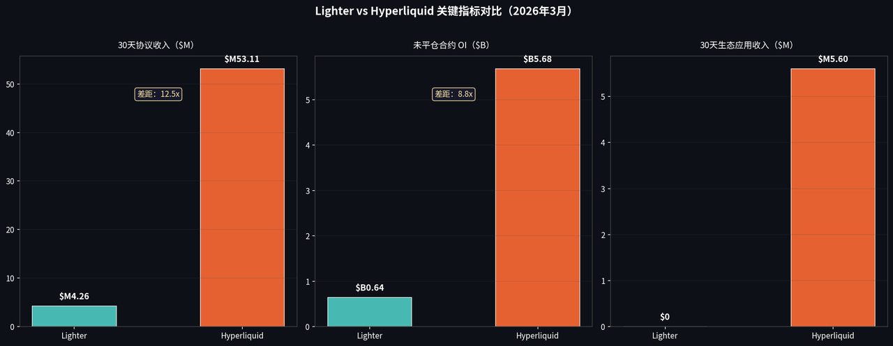 Lighter 与 Hyperliquid 的差距,表面上是收入规模的差距(12.5倍),但本质上是生态建设阶段的差距。