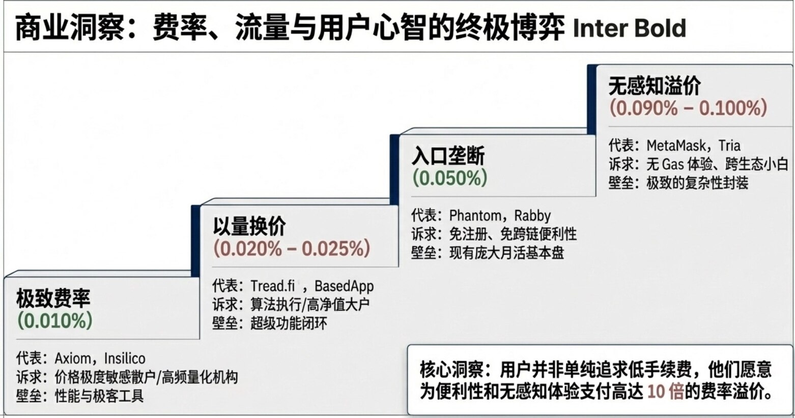 - 对费率极度敏感(选择 0.010% 费率的 Axiom)