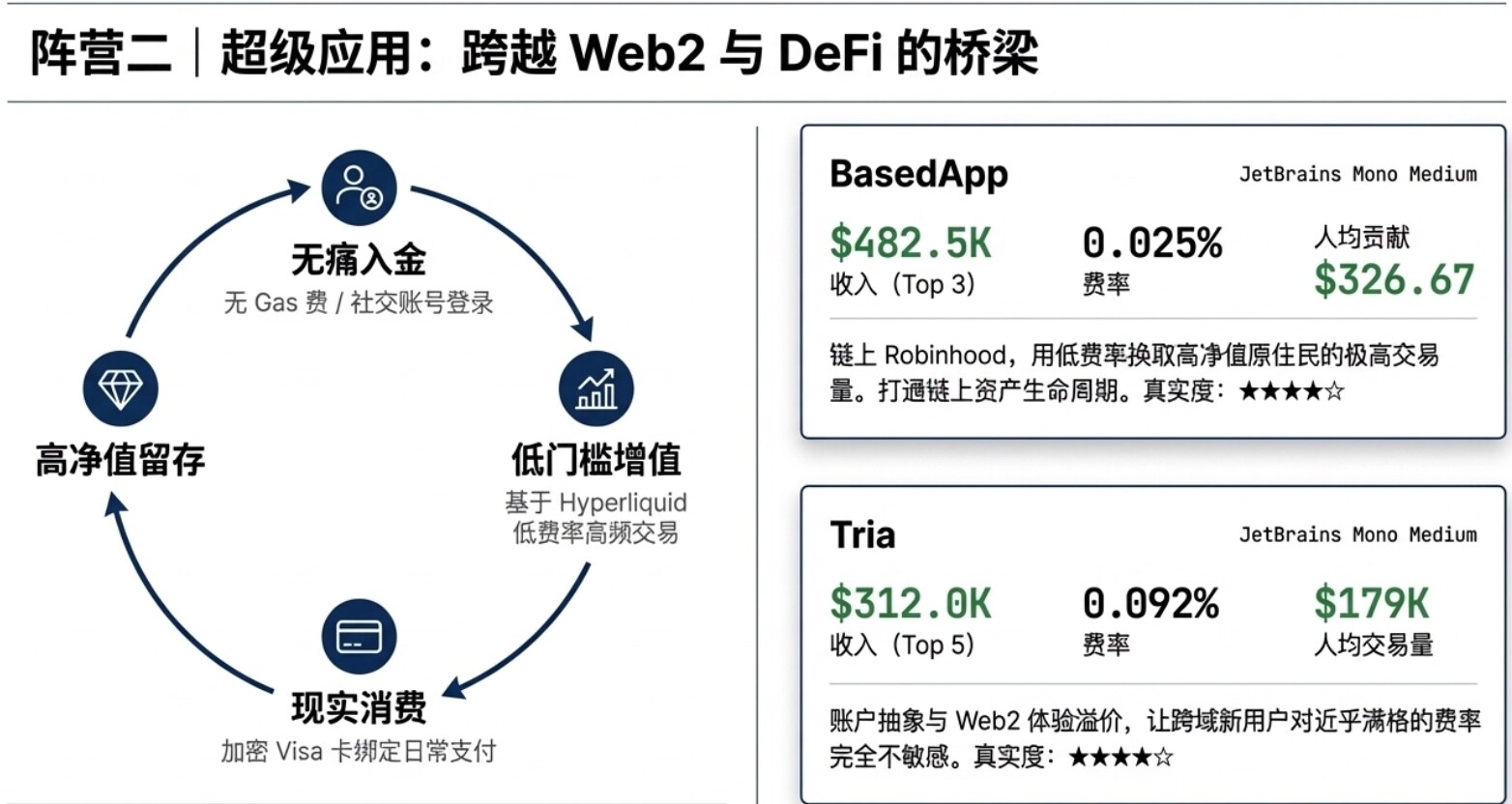 - 超级 App 用户(Based、Tria):用户数中等,人均贡献高