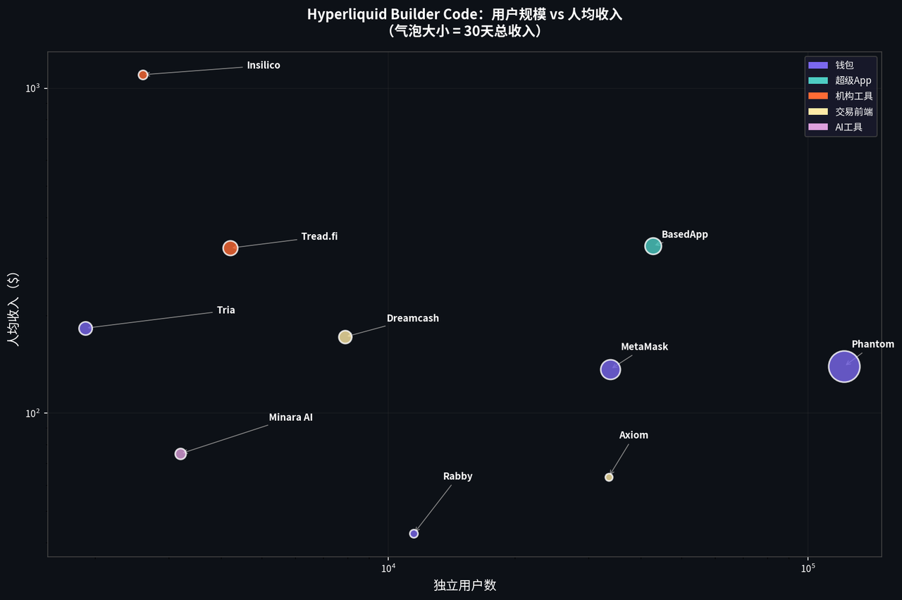 - 散户用户(Phantom、Axiom、Rabby):用户数多,人均贡献低